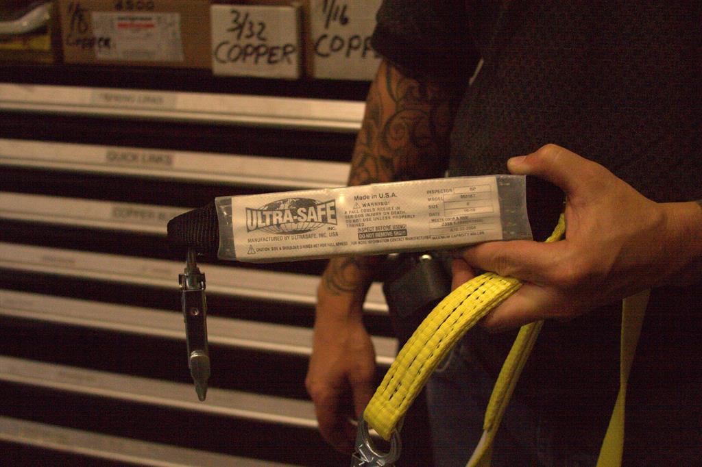 Because of the rising popularity of shows that require more sophisticated rigging, hoist-related accidents have risen at a similar ratio. The entertainment community has incurred quite a few serious accidents, from Spider-Man on Broadway to the building of Las Vegas’ City Center during which six deaths occurred. A renewed emphasis on safety is promoted industry-wide. Intelligent and informed selection of equipment in rigging situations and the fall protection applications (which include the use of force-reducing components or shock packs) can potentially reduce the frequency of these incidents to zero. The test weight drop demonstration has become an essential sales tool for SSWR&R’s shock absorbers. After watching a fatal fall from six feet, the same fall is reproduced with a shock absorber installed on the harness. Instead of 4000 pounds of force, the test weights incur a painful, but not fatal, 700 pounds of force. “I wouldn’t want to experience that kind of force,” Andrew smirks, “but at least it wouldn’t be the end of me.”