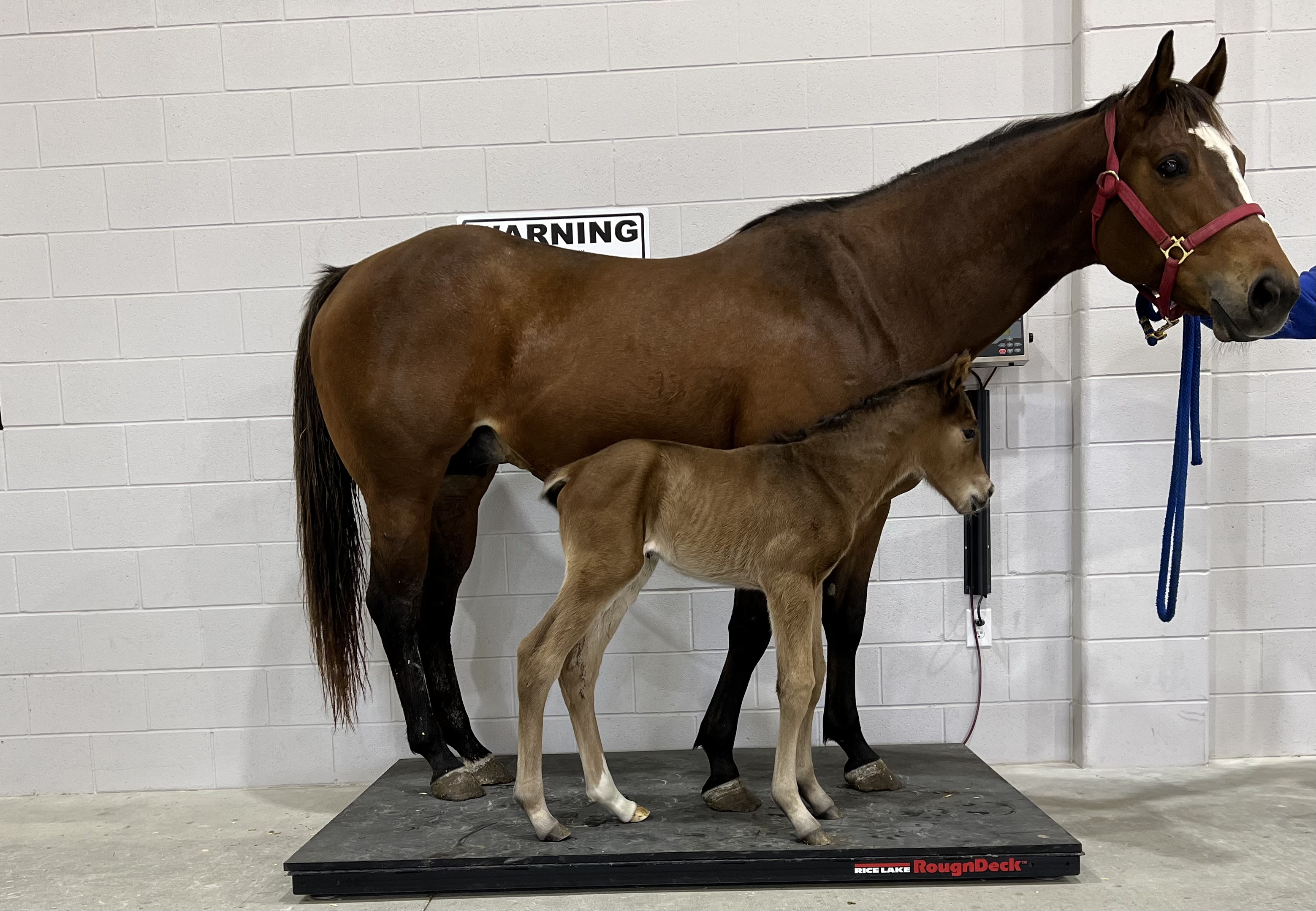 Internal conditions can be caught early when foal weight gain or loss is accurately tracked. This allows veterinarians to provide intervention care when necessary, ensuring foal health and growth are normal. Dr. Darby also weighs mares postpartum, monitoring their weight gain and recovery to help determine whether they are producing enough milk to feed their foal or if supplemental feeding is necessary.