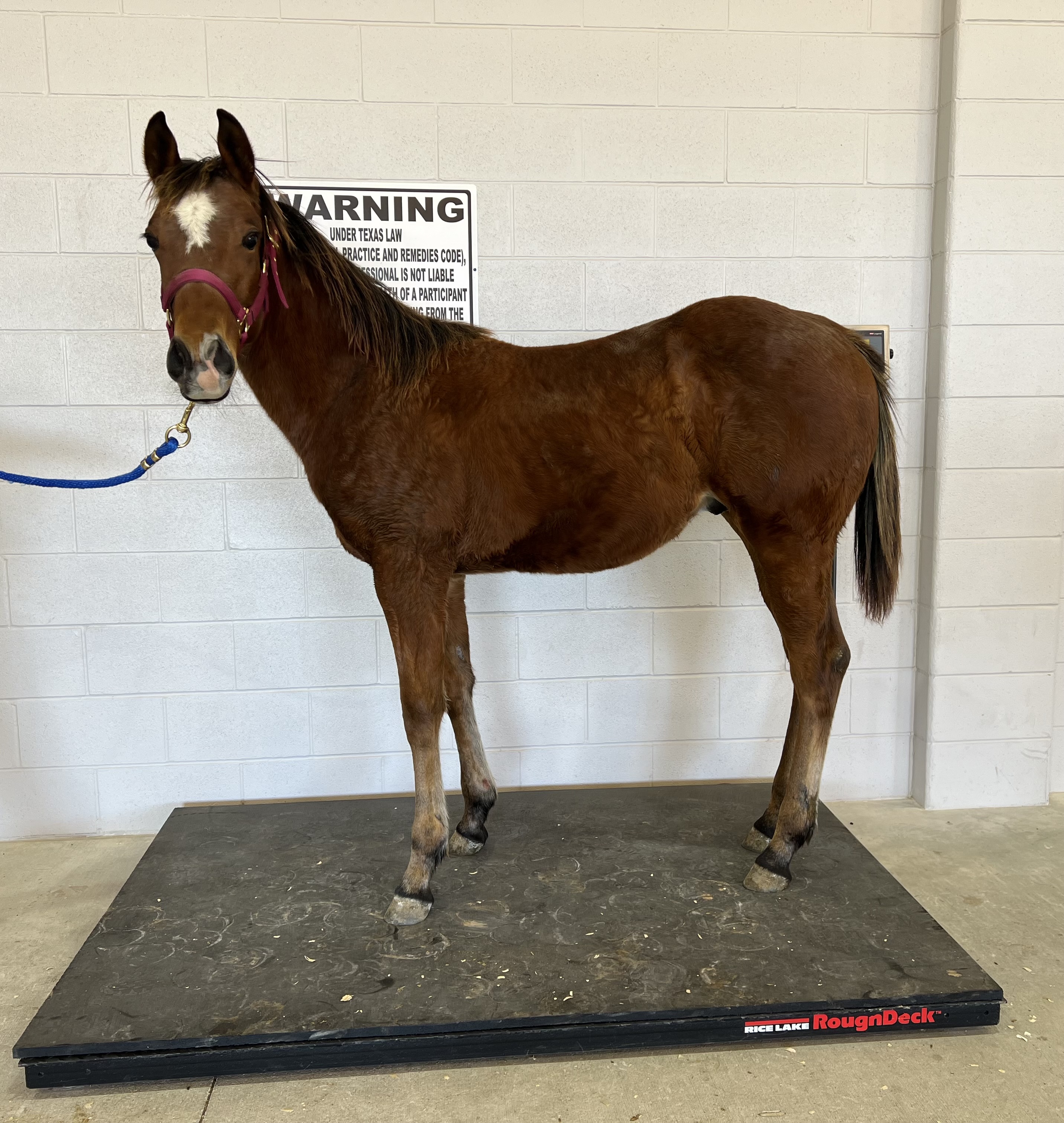 Some horses can be claustrophobic if they’re led to close to a wall, but the RoughDeck EQ has a platform of 4 feet by 6 feet, giving animals enough space to comfortably stand on the scale. Dr. Darby said, “most of the horses are champs [using the scale] because they’re used to trailer loading. The yearlings get a little spooked, but with patience it works well.” Dr. Ashbrook agreed and added that yearlings who are still learning can stand diagonally on the scale, keeping their faces away from the wall while the veterinary team records their weight.
