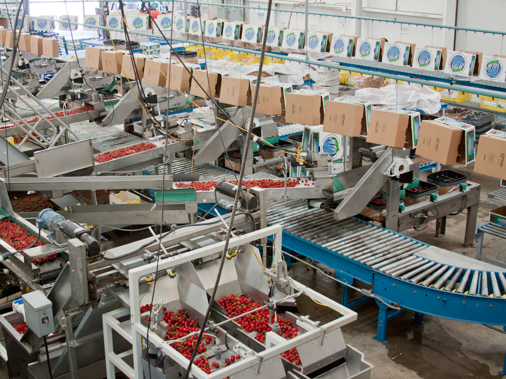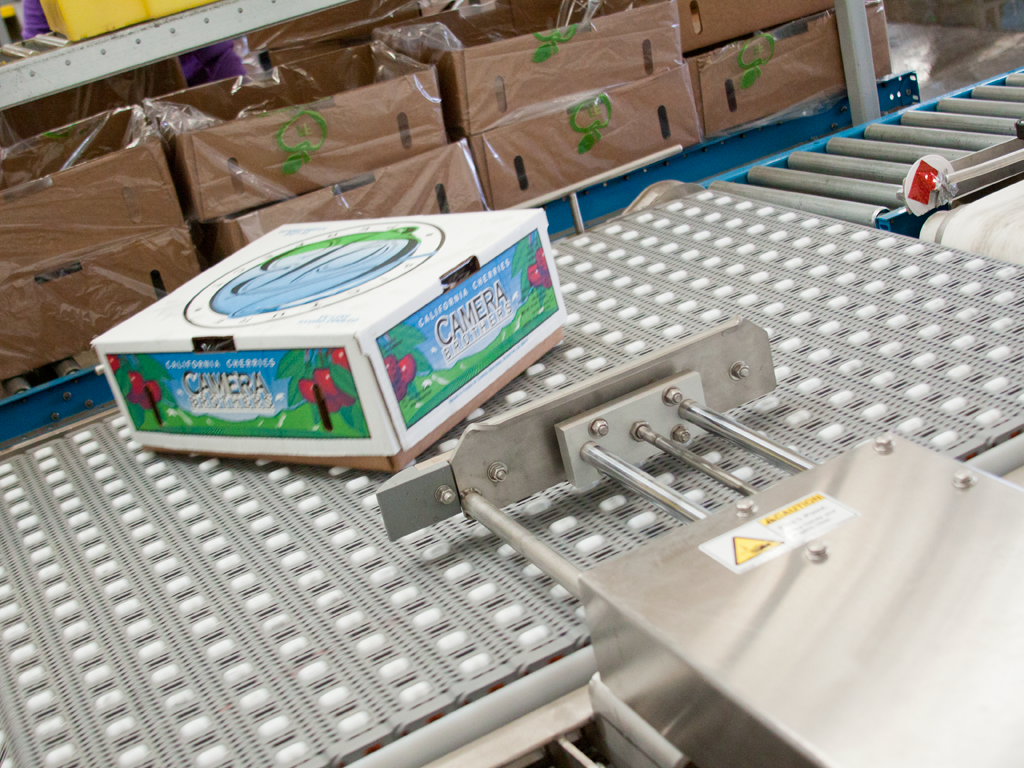 With those small changes now in place, Camera Brothers is reaping big rewards. The shed’s system takes cherries from the tree to the box in a matter of minutes. First, cherries travel up an incline belt where cluster-cutters separate the stems. They then drop through gaps in the floor, with different gap widths determining cherry size. From there, cherries are sorted and sized one more time before going to the box fillers, after which filled boxes travel to the MotoWeigh. Once at the MotoWeigh, each box travels over the indexer, which spaces them out so only one box is on the scale at a time. A scanner reads the box’s barcode and sends that information to the 920i, which calls preset over/under/accept values. If the box is over or under tolerance, the 920i activates a diverter, sending it to a reject line at a smooth 45-degree angle. If a box is within the “accept” range, it continues on its conveyor, and an inkjet printer sprays nontoxic ink on the box. This information includes the type of cherry, size grade, GTIN barcode, and even the company logo. All information adheres to the 2012 Product Traceability Initiative which provides traceability standards and is becoming required by an increasing number of retailers.