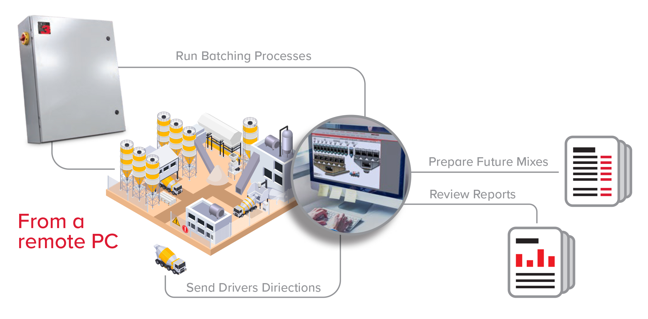 Remote operations allow batching facilities to create command posts from computers on the same network as the controller. Monitoring processes from a remote location can also reduce downtime between batches and trucks, boosting facility efficiency.