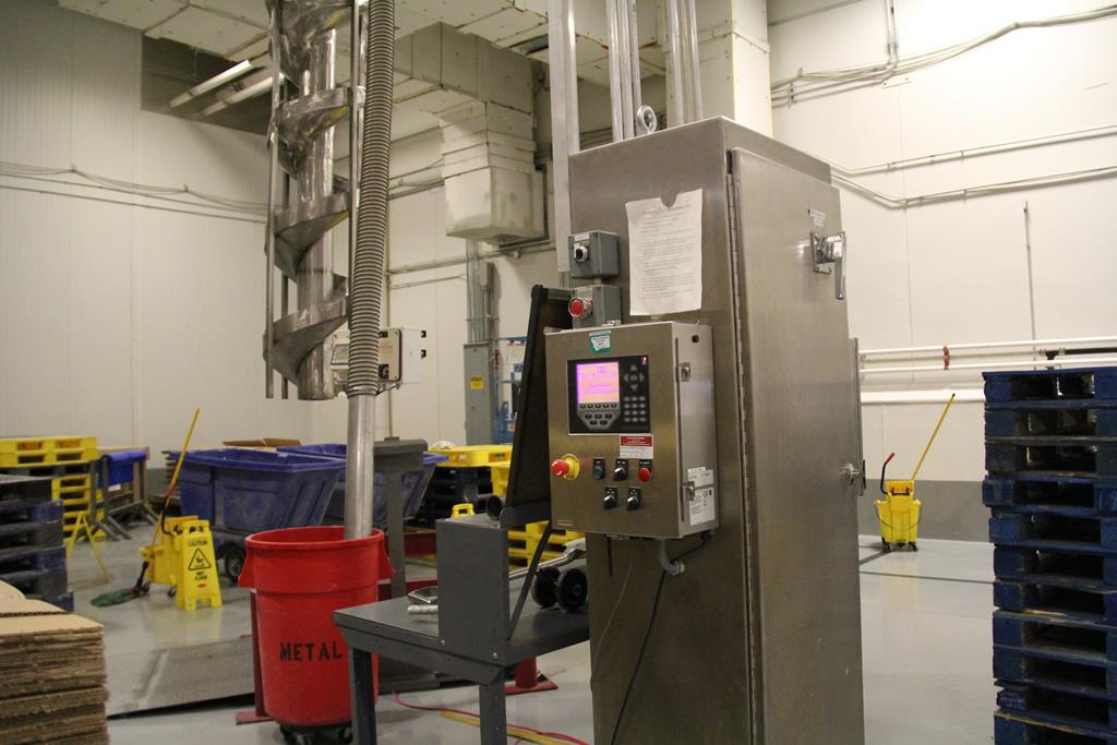 Because of pasta’s fragile nature, it will crack if dropped and result in poor quality. Claude and Scott incorporated a custom made Italian spiral to achieve a slow, gentle pasta drop and avoid the all-too-common damage. Pasta rides down the giant auger and is softly placed in a box. Claude also wanted the pasta to be weighed as it exits the spiral, so Logic Control installed BenchMark bench scales to capture accurate weights and a 920i FlexWeigh System 102 which interfaces with a foot pedal to control the process. A small hopper was built with a gate valve at the bottom of the spiral, which is controlled by weight set-points. The system precisely calculates preact (product that is in mid-air when filling is stopped) and incorporates that into the target weight, reducing product waste due to overfills.