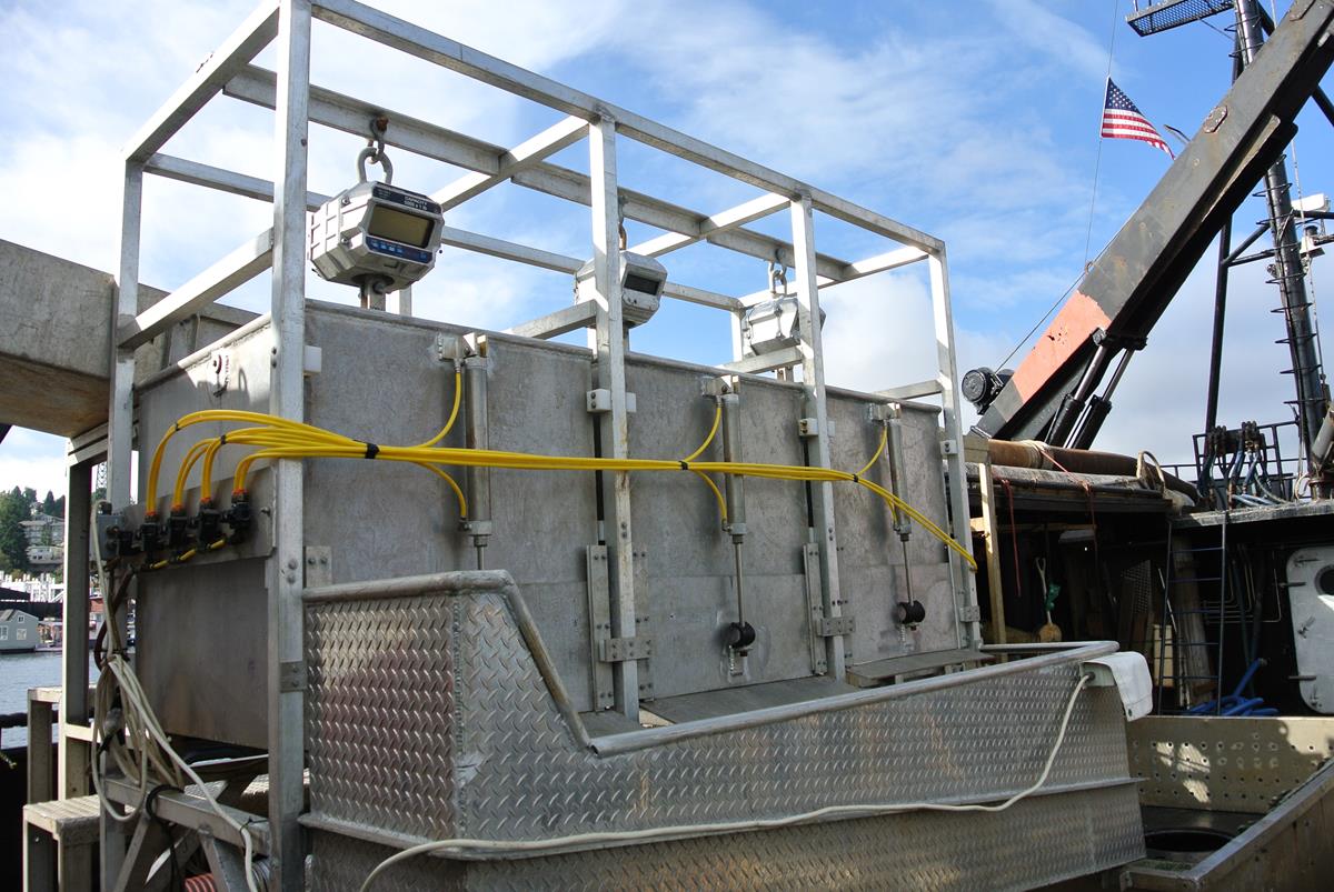 When full with 80,000-350,000 pounds of fish, the tender boats quickly return to the fish plants; Cheyenne especially appreciates the Port-A-Weigh’s durability at this time in the process. “When the tender boats are running, a lot of them don’t take the scales down out of the hopper system. So you have the hopper swinging, in the frame, pushing and pulling on the scale the whole time and the scales stand up very well.”