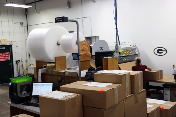“We stay pretty busy all year,” said Tim Schroeder, manager of the Packers’ retail distribution center, “but it really ramps up in April through September and the holiday season. Especially when the team is winning” as he gives a wink. “We ship significantly more orders in a playoff season.” Good thing the Packers have been winning a lot over the past several decades, as it keeps the Packers’ packers busy shipping orders.