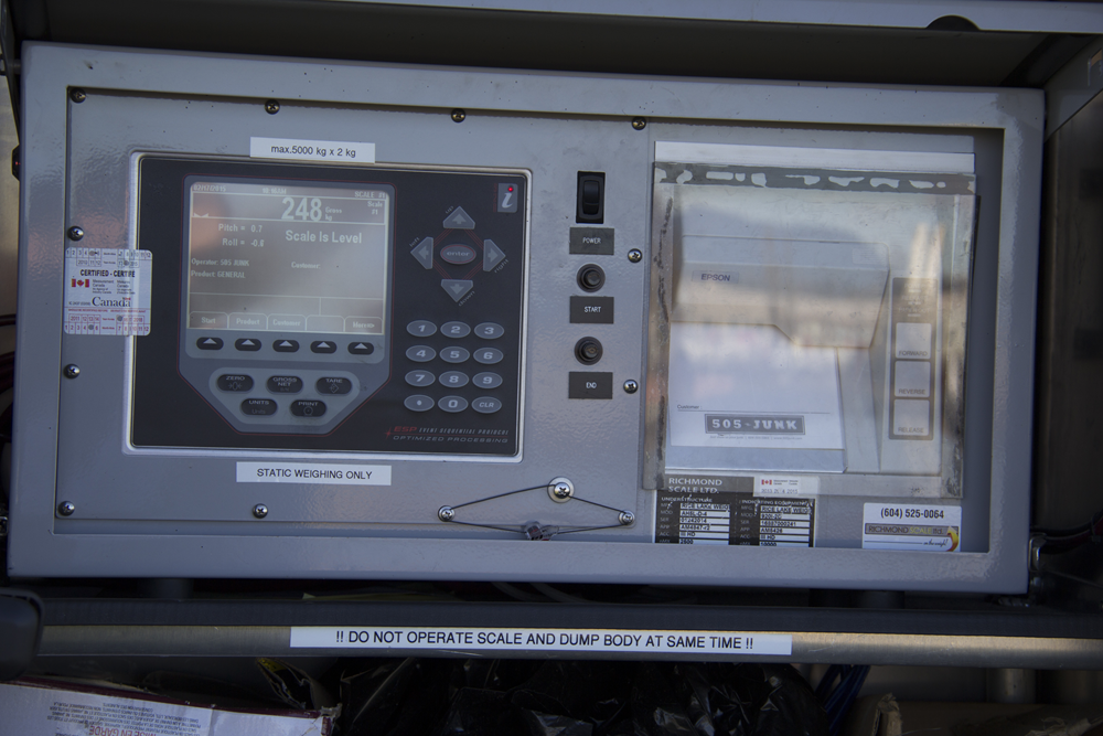 Barry had a feeling he was onto something big, so he recruited Scott Foran, a Kwantlen Polytechnic University classmate, to join his team. Scott helped finish the business plan—one that would differentiate them from the dozens of existing junk collection companies. Together, they would create a modern, transparent, customer-focused enterprise built around onsite Legal for Trade weighments. Competitors charged based on volumetric approximations (such as half of a truckload). However, this approach is prone to subjective assessments, higher-than-estimated charges and customer dissatisfaction. Using weight for customers’ junk provides a scientific, professional and verifiable method for straightforward transactions. The only thing standing in Barry and Scott’s path was one minor detail: they had no idea if a Legal for Trade onboard scale existed.