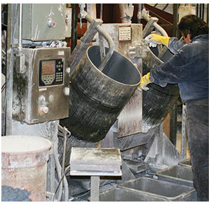 With the help of Garber Metrology, Ecore has been able to upgrade and automate the process for the majority of its tilemaking stations. They retrofitted existing mixers with better load cells and automated the flow of ingredients using the graphic display and wall-mount controls of Rice Lake’s 920i Controller. Rubber crumb and other ingredients are now dispensed automatically according to a stored recipe. But it gets even better.