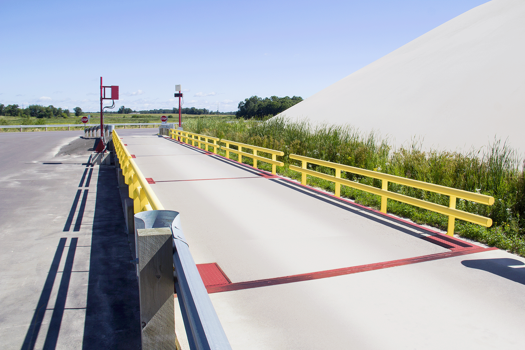 Steel decks are typically installed in less than a day. These scales weigh less than a concrete deck scale, making relocating easier. Steel weighbridges usually offer traction treads to help with wet conditions such as rain and snow. Steel deck truck scales offer the following: